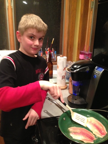 My 9 yr. old son wanted to try it himself tonight, but was intimidated by wrapping the fish in bacon and flipping it without it coming apart. I had him fry the bacon first and then sauté the fish in the bacon grease. Same flavor and now he can make it for me :)